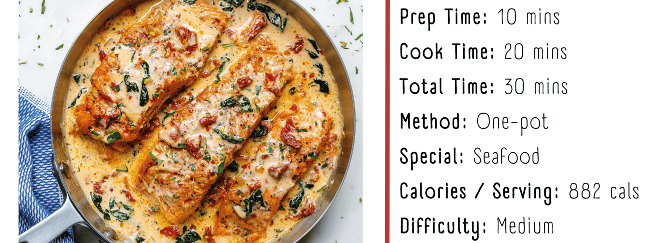 Indulge in the creamy goodness of this Tuscan Salmon recipe – a delightful pan-fried sensation that's ready in 20 minutes or less 🍽️